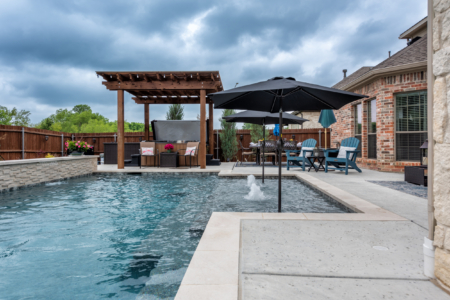 The design of this pool is centered around a clean and modern aesthetic, featuring sleek, straight lines that exude a contemporary vibe. With a primary focus on providing an ideal space for both entertaining and relaxation, every aspect of the pool has been meticulously crafted to meet these objectives.